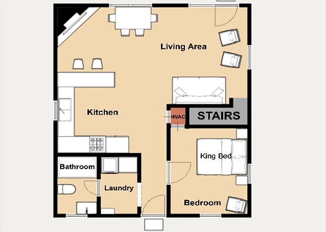 Full Kitchen, Refrigerator, Coffee Maker, Microwave, Toaster, Cookware, Wine glasses, Blender, BBQ utensils, Baking sheets